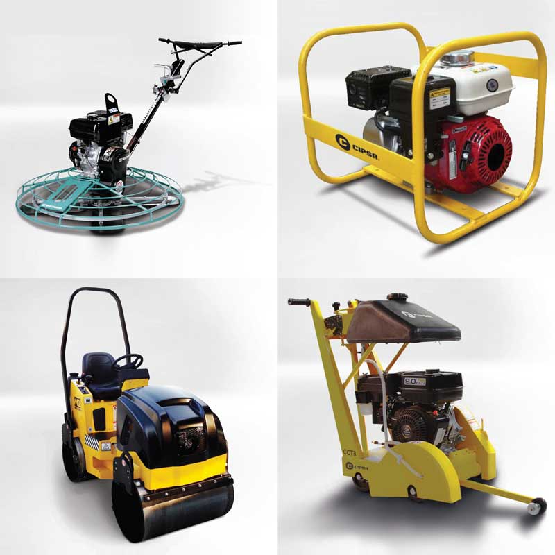 Con una amplia gama de productos de la reconocida marca CIPSA, ponemos a su disposición equipos como, allanadoras, vibradores, rodillos, cortadoras de piso y más. Adicionalmente contamos con capacitación para el uso de los equipos, con el objetivo de que puedan obtener los mejores resultados de rendimiento y operación de los mismos.
